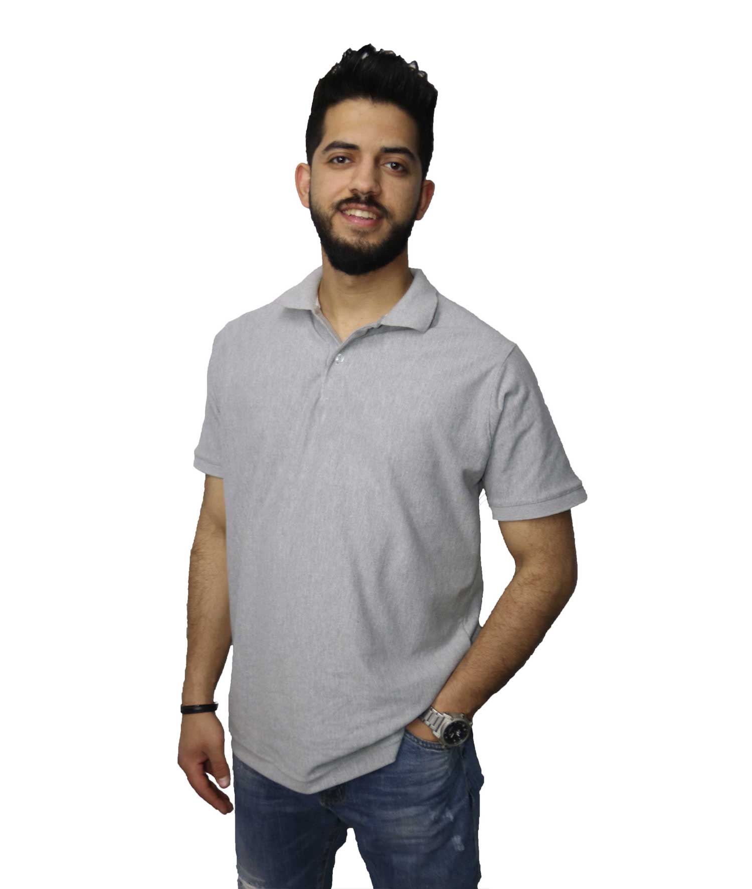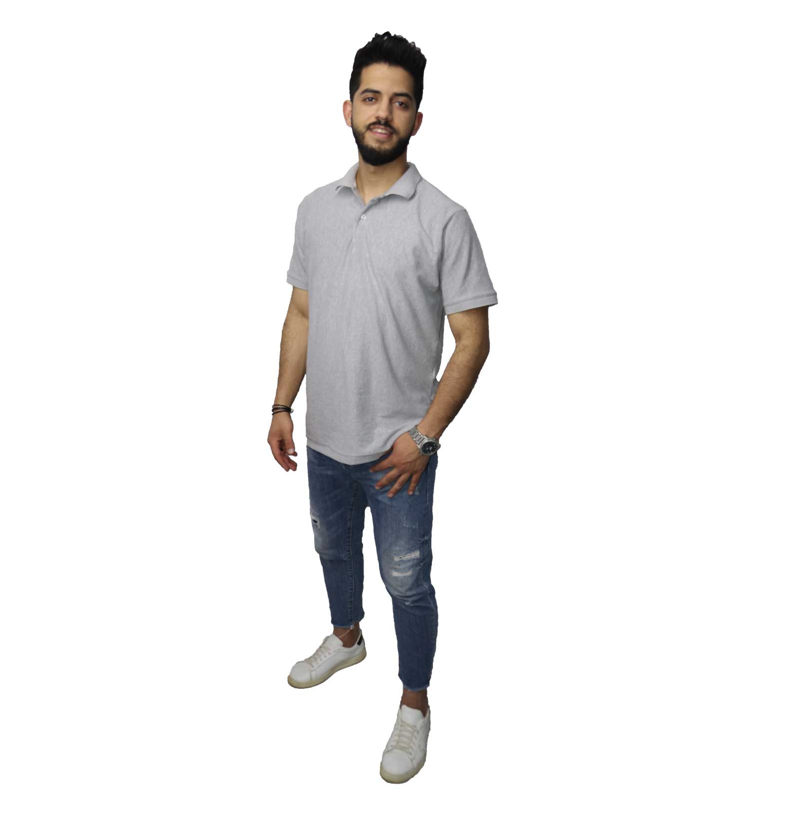 / تى شيرت بولو قطن,رمادى